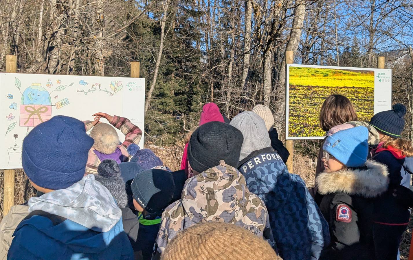 Les élèves étaient très fiers, vendredi, de voir leur travail exposé dans l'espace public.