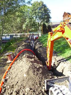 Depuis la mi-septembre, les travaux d’éclairage des berges de l'Arly ont démarré par la pose des réseaux enterrés le long des cheminements piétons.