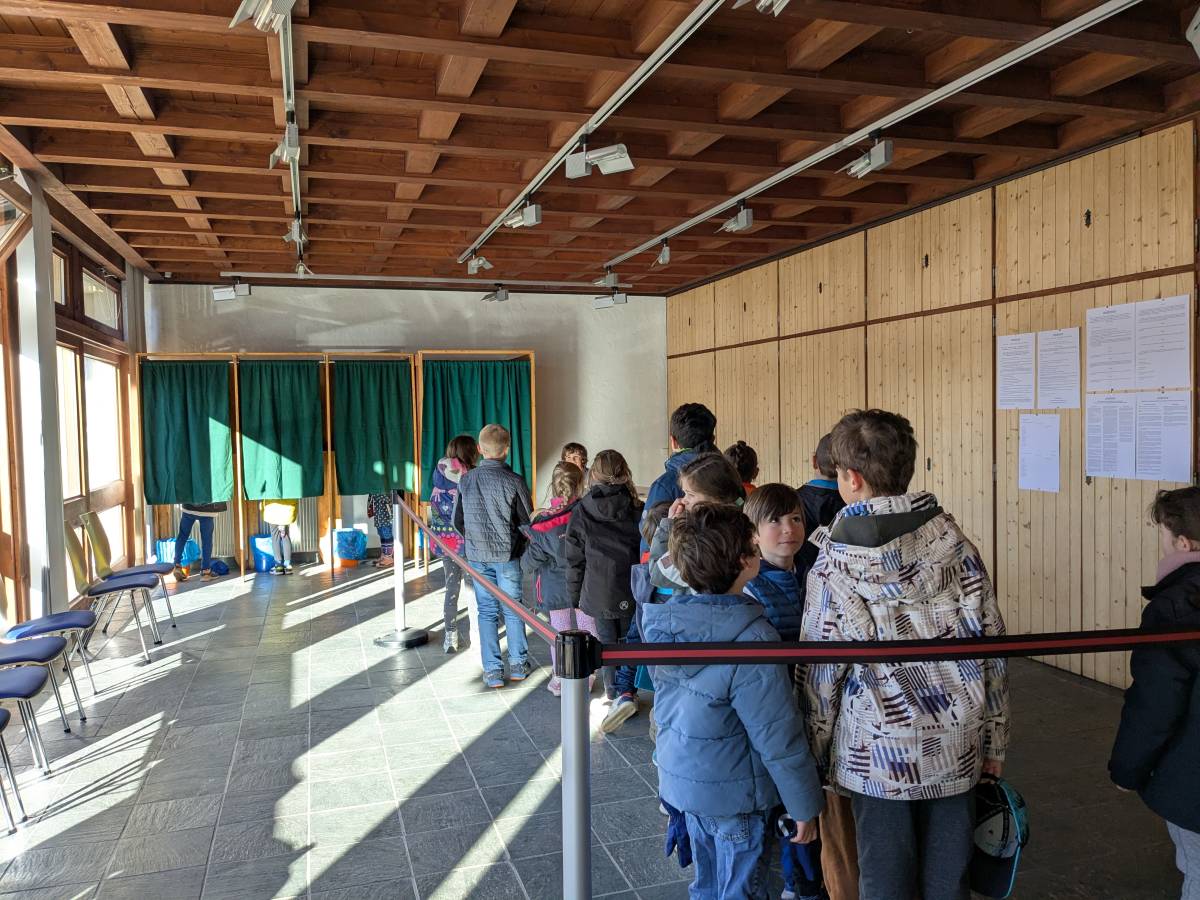 Le vendredi 13 mars, les jeunes étaient excités à l’idée de découvrir le bureau de vote (ou redécouvrir pour ceux qui ont l’habitude d’accompagner leurs parents). Lorsqu’ils sont arrivés en mairie, ils ont écouté les consignes de leurs professeures et ont entamé le processus des élections : prendre une enveloppe et un exemplaire de chaque liste, insérer la liste de leur choix dans l’enveloppe dans un isoloir, déposer leur enveloppe sans piper mot et apposer leur signature.