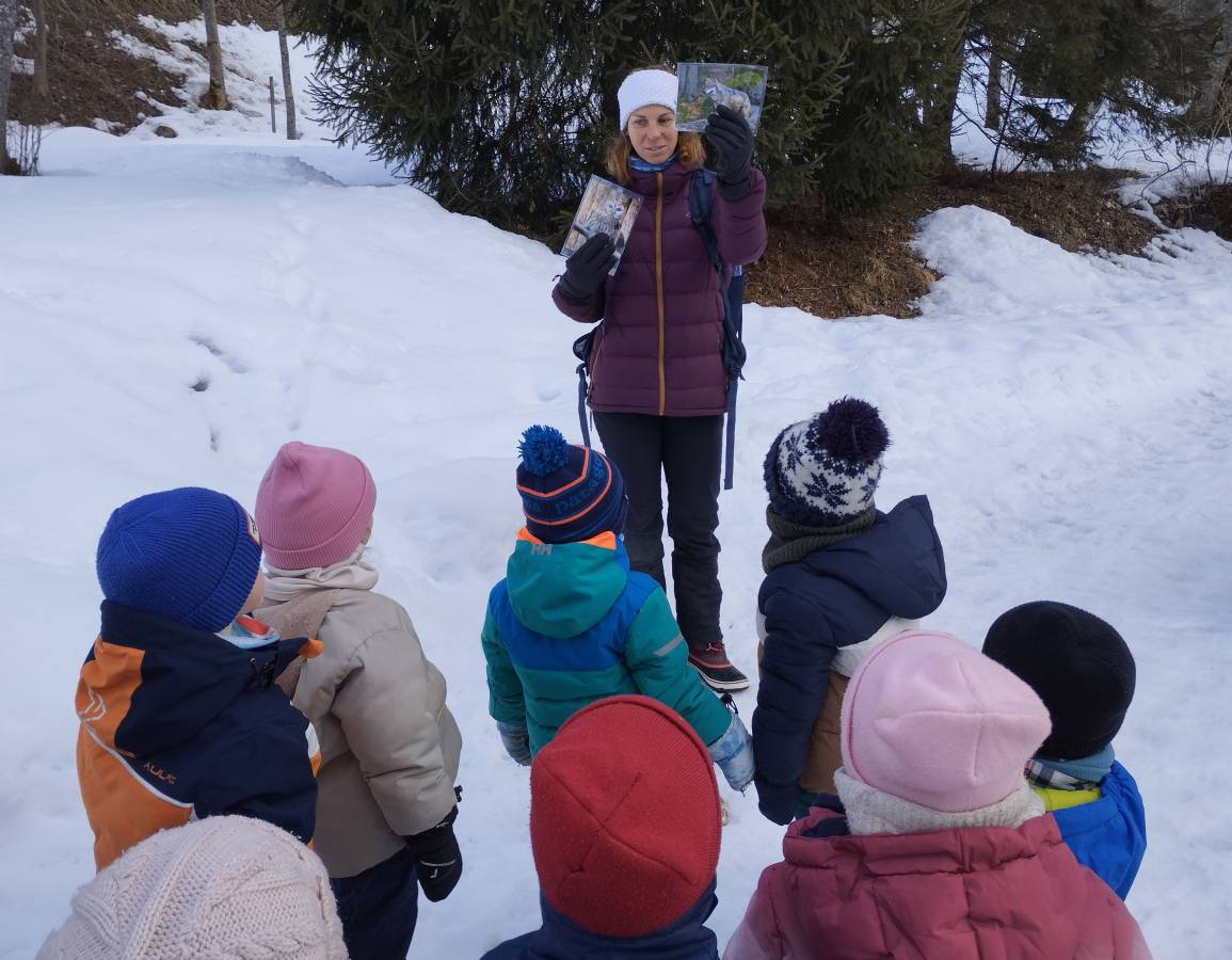 Ce jeudi 5 février, les élèves de moyenne et grande sections de l’École Saint-Joseph sont allés au lac pour découvrir la faune de la montagne en hiver. Accompagnés de leur professeure Christiane Pelloux, de l’agente Alison Moncenix, de parents et de l’éducatrice à l’environnement du Centre de la nature montagnarde, Nathalie Chazelle, ils ont acquis des connaissances sur la vie animale, sur les besoins de la faune et sur les mécanismes d’adaptation du vivant au milieu montagnard hivernal. Ils ont ainsi appris pourquoi la robe de l’hermine, du lagopède et du lèvre variable devient blanche à l’approche de l’hiver, pourquoi la marmotte hiberne… et tant d’autres choses encore !