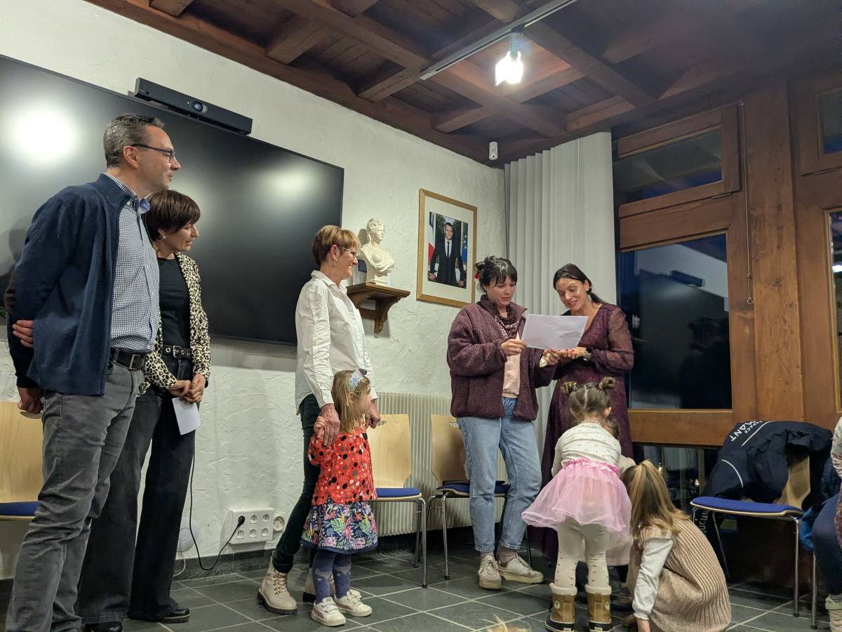 Le maire, Yann Jaccaz, et Solange Cooke, adjointe au maire en charge de la jeunesse, ont retracé le parcours de Michèle au sein de la crèche communale « Les Pralinous» : « Elle est arrivée quasiment aux débuts de la structure puisque la crèche a été créée en 2009 et que Michèle l'a rejointe dès 2010. » Ils l'ont félicitée pour son comportement exemplaire, basé sur la bienveillance, l’écoute, la patience et la capacité à susciter l’intérêt des enfants.