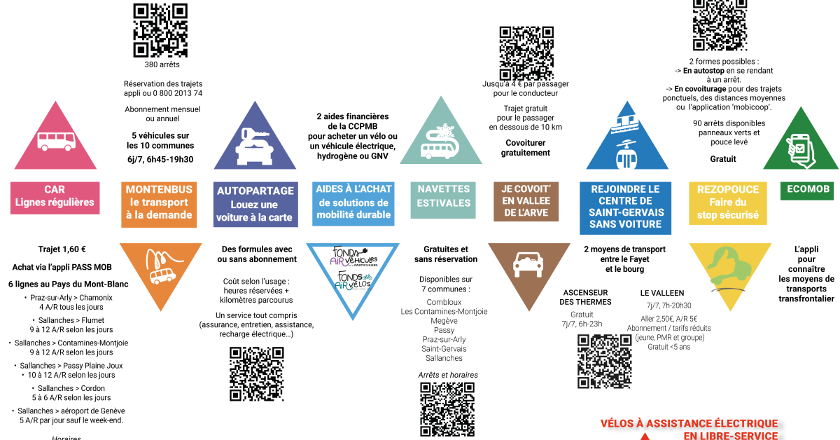 Grâce à ce visuel de la Communauté de communes Pays du Mont-Blanc, découvrez comment vous déplacer sur le territoire cet hiver 2024/2025. Entre l'autopartage, les navettes hivernales, le Rezopouce et les autres propositions, les possibilités sont diverses et toujours en faveur d'une mobilité plus vertueuse !