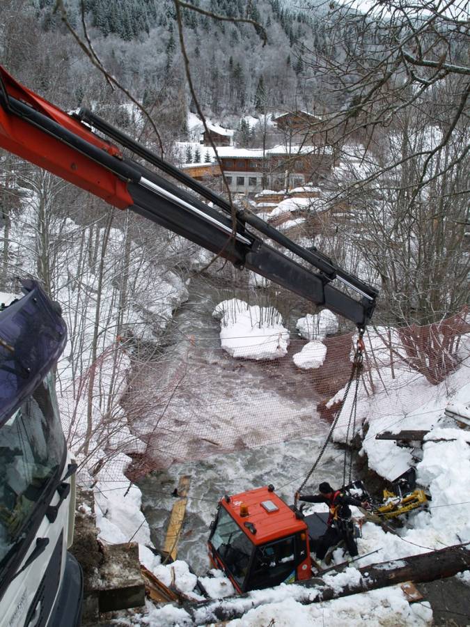 Samedi 2 février, vers 8 h 30, la dameuse assurant l’entretien de la piste de ski de fond, qui relie Praz-sur-Arly à Megève, est tombée dans le torrent de Cassioz. Une passerelle de la commune de Megève s’est, en effet, effondrée au passage de l’engin. L’accident n’a, heureusement, pas fait de blessé. Il ne reste rien, en revanche, de la passerelle. Quant à la dameuse de Labellemontagne, évacuée du torrent dès 13 h, elle est actuellement contrôlée pour voir quelles sont les réparations à effectuer afin de la remettre rapidement en service.
