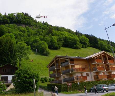 Spectaculaire reprise du chantier lundi matin avec le ballet d’un hélicoptère à l’entrée est de Praz-sur-Arly. Après plusieurs mois d’attente en raison d’un problème technique, les nouveaux filets ont été livrés et vont être installés sur environ 300 mètres linéaires.