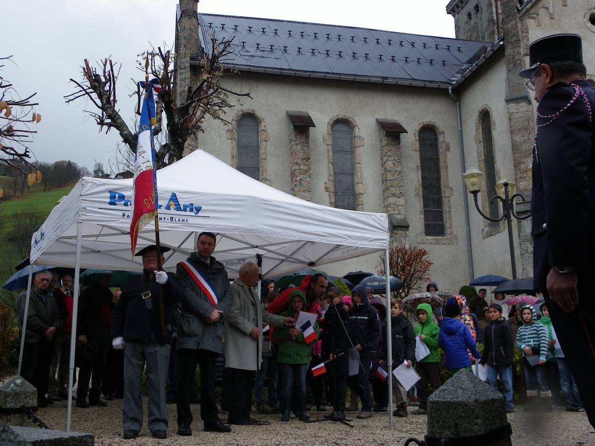 La cérémonie, organisée par l’association des Anciens Combattants, a été marquée par l’intervention des enfants de l’école publique. Le directeur de l’école, Sébastien Blanc, a demandé à ses élèves de lire, chacun leur tour, les dates clés de la Guerre de 1914-1918. Ce sont aussi les enfants qui ont lu le nom de tous les soldats inscrits sur le monument aux morts. Ils ont ensuite chanté la Marseillaise devant un public ému, à commencer par le président des Anciens Combattants, Raymond Perrin, et le maire, Yann Jaccaz, qui les ont beaucoup remercié pour leur intervention, rappelant l’importance du devoir de mémoire afin d’éviter d’autres guerres.