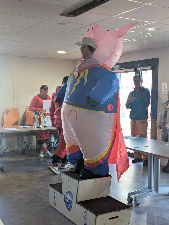 Organisée par la mairie, l’ESF, l’office de tourisme et Labellemontagne, la course a réuni des participants déguisés ou non sur la piste du Crêt du Midi pour réaliser un slalom géant d'une seule manche.