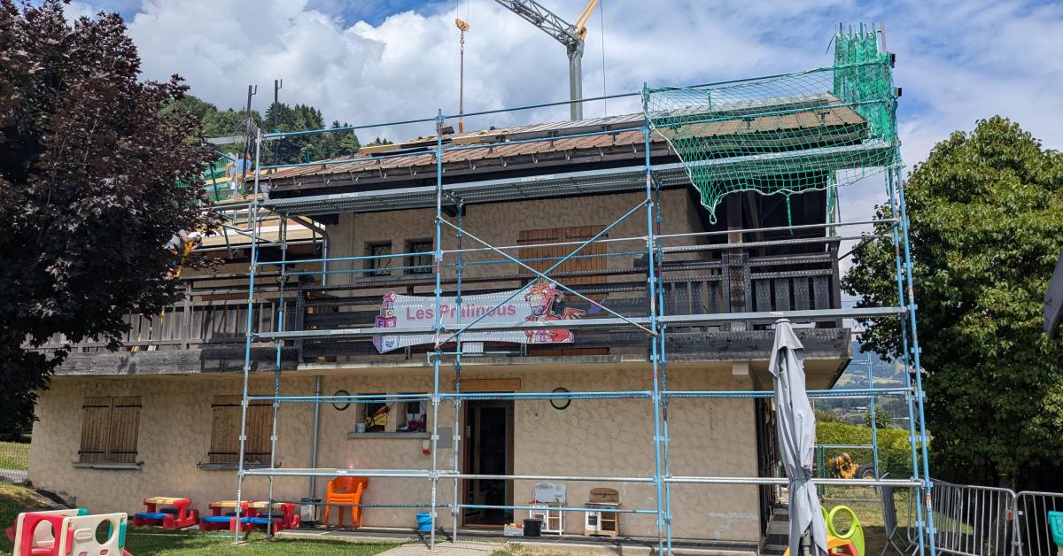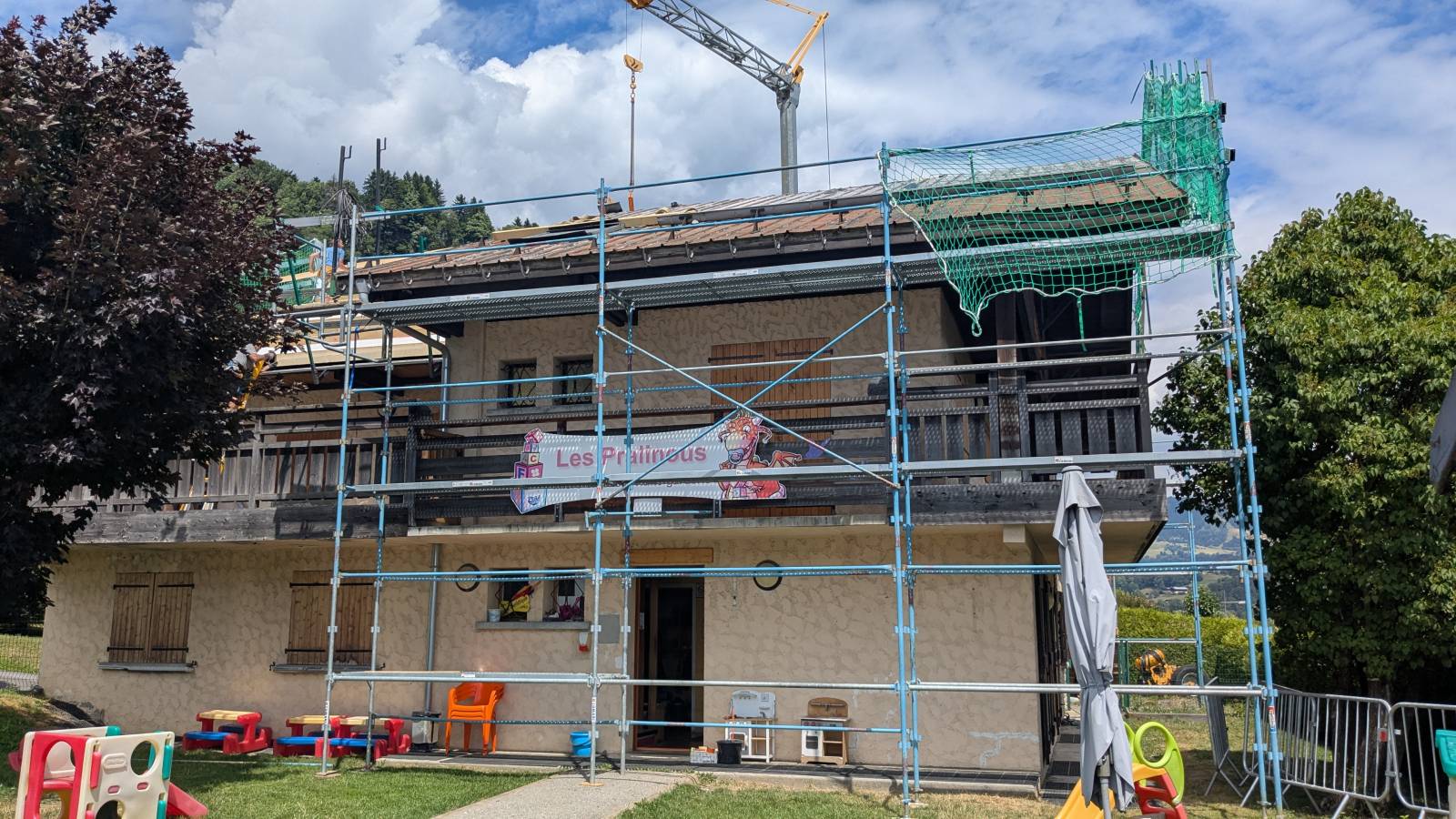 Cet été, la mairie a confié la réfection de la toiture aux entreprises Jérôme Chêne et Michel Mégevand. Le chantier incluait l’isolation ainsi que la peinture de la salle principale du rez-de-chaussée, pour un montant de 99 973,93 €. Un agent municipal a apposé des protections sur les rebords des fenêtres. La CAF de la Haute-Savoie et la dotation d’équipement des territoires ruraux (DETR) ont soutenu l'opération à hauteur de 34 164 € et 23 382 € respectivement.