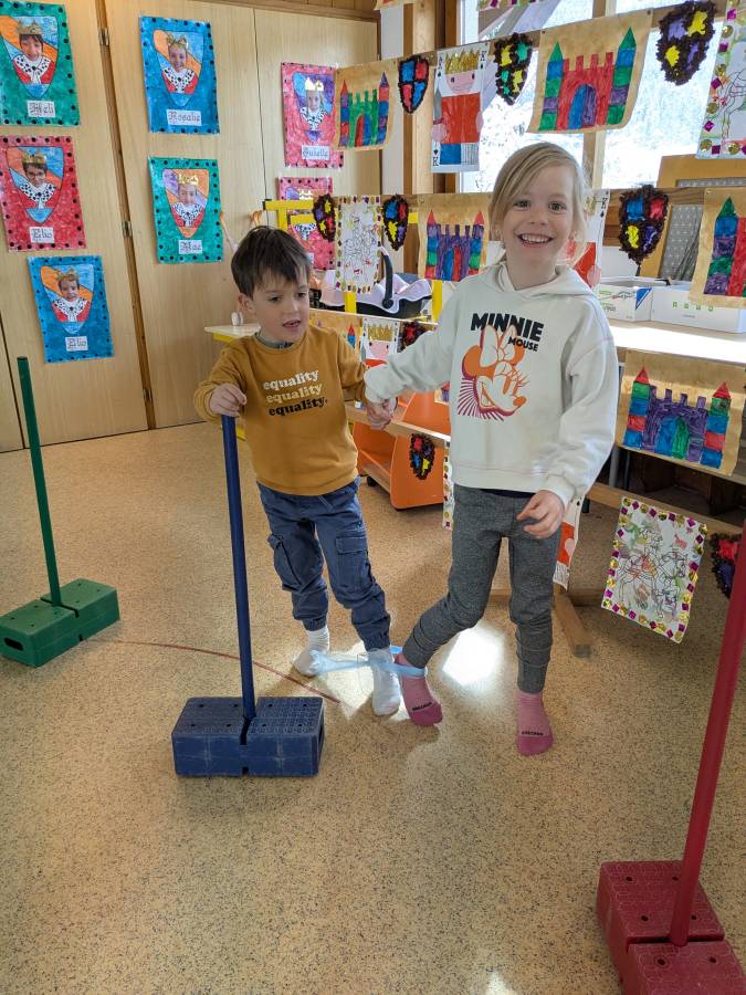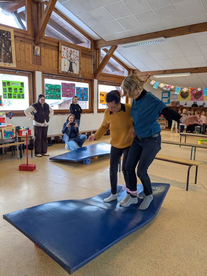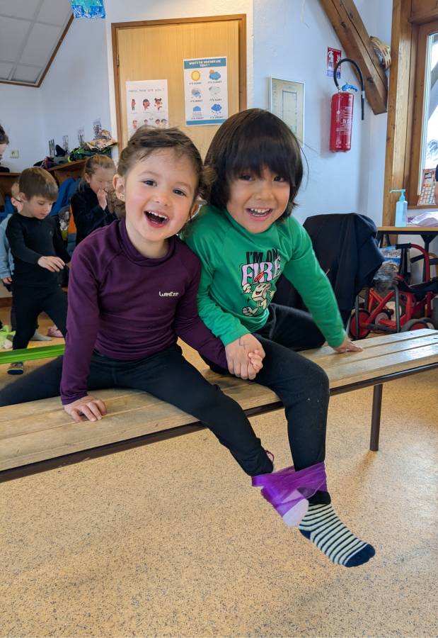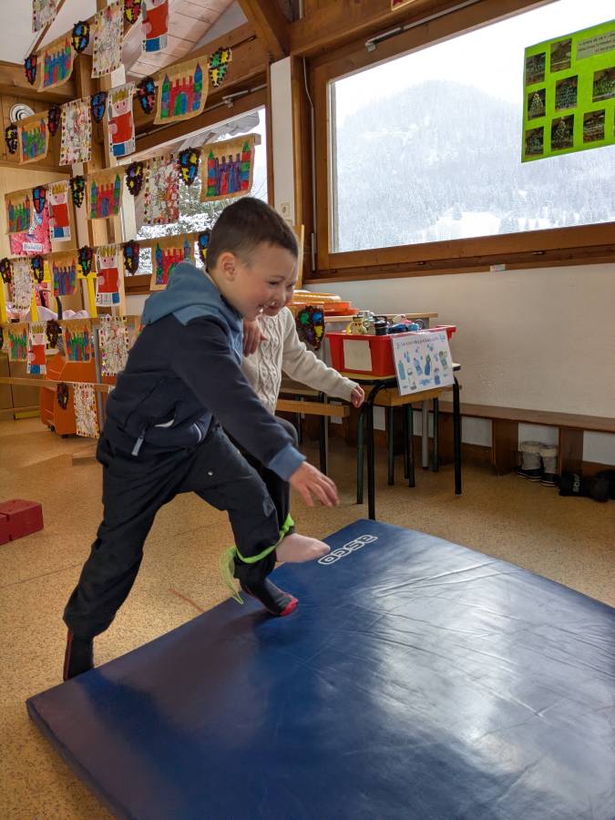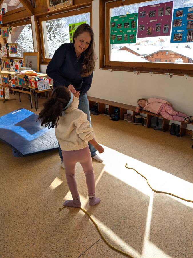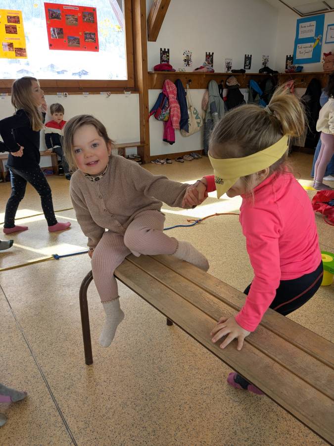 Après avoir retiré leur tenue de neige, les enfants ont été divisés en deux groupes : ceux qui débuteraient par des jeux de société et ceux qui réaliseraient des activités motrices. Écoute, joie et entraide ont été les maîtres-mots de ces activités.