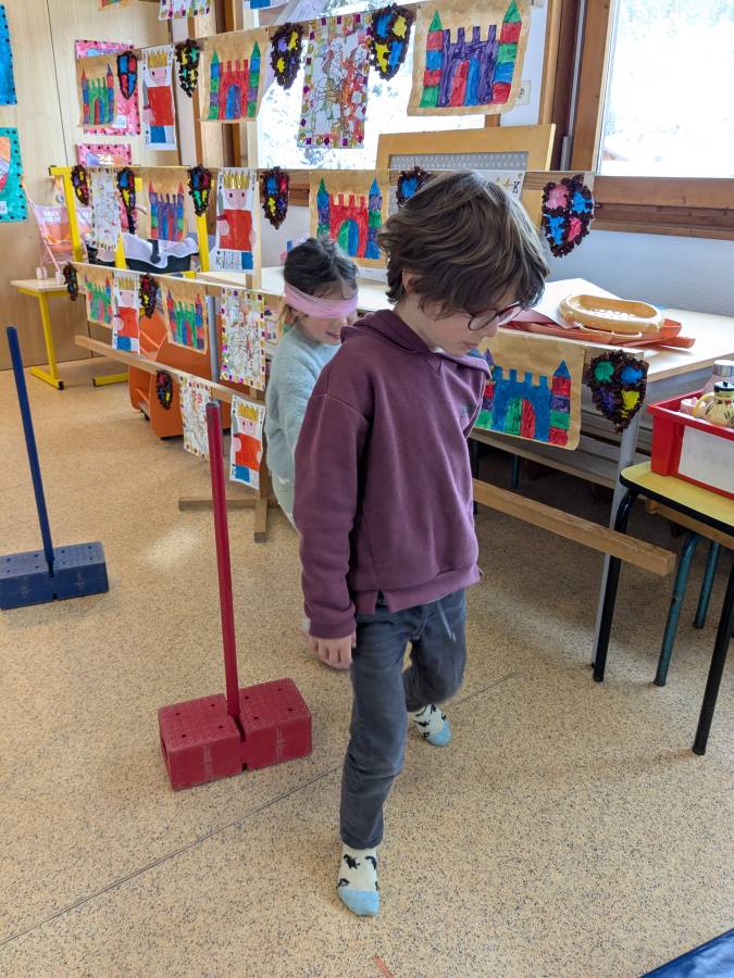 Lève la jambe, baisse-toi, ralentis… Un peu hésitants au départ, les enfants ont adoré suivre le parcours les yeux bandés, guidés par la voix de leurs camarades de classe.