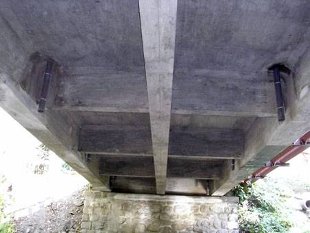 Les travaux ont donc consisté tout d’abord à étancher et canaliser les eaux de drainage afin d’éradiquer l’origine du problème. Ensuite les ferraillages apparents ont été passivés pour stopper la corrosion et les bétons ont été réparés au mortier de résine. Enfin l’ensemble a été renforcé par des lamelles de carbone. Les trottoirs ont également été repris avec en plus un revêtement anti dérapant.