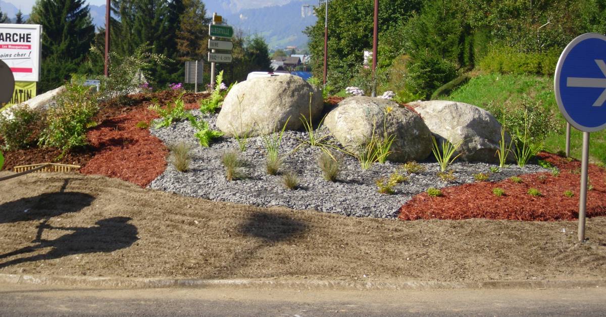Au printemps 2010, le Conseil général a relevé des dégradations anormales de la couche de surface de l'enrobé du rond point d'Intermarché, réalisé l'automne précédent. En fait, ce désordre a été constaté sur plusieurs ronds points de Haute-Savoie pourtant réalisés par des entreprises différentes. Après des analyses en laboratoire, il s'avère que son origine proviendrait d'un problème de liant des granulats. Dans le cadre de la garantie, l'enrobé sera donc entièrement repris cet automne (date encore non connue) à la charge de l’entreprise qui a réalisé l’ouvrage.