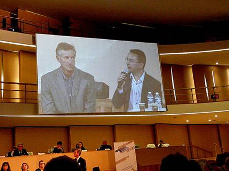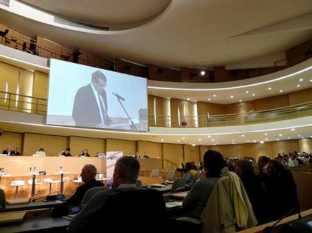 Or, c’est le maire de Praz-sur-Arly, Yann Jaccaz, vice-président du Syndicat mixte Pays du Mont-Blanc, qui est l’élu responsable de ce programme européen Tour du Mont-Blanc. C’est à ce titre qu’il a tenu à venir lui même défendre ce site Internet devant le jury et le public des Trophées Innovation et Tourisme. Un exercice impressionnant, dans l’hémicycle du Conseil Régional, devant plus de 400 personnes. Yann Jaccaz et Éric Thiolière, chargé des sentiers pour le Syndicat mixte, se sont partagés l’intervention afin de convaincre les jurés de la qualité du travail et du caractère innovant de cet outil.